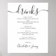 This elegant black and white script minimalist drinks menu sign is perfect for your wedding celebration. Designed by Thisisnotme©