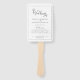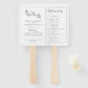 This wedding program fan features a black and white simple design. Black text on a white background is accented with a thin black border. Custom text allows you to add the names of the couple, the order of ceremony and a personal thank you on the front and the wedding party in the back.