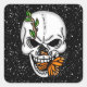 White, orange and black digital art skull with a monarch butterfly and weeds growing out of its eyes and mouth sockets.
