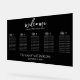 Display a welcome and seating chart for your guests with this black and white acrylic wedding sign. The chart lists 5 tables with the option of listing up to 10 guests per table.