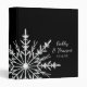 The festive Black and White Snowflake Winter Wedding Binder makes the perfect place to organize the planning details for your December, January or February marriage ceremony and reception. This elegant custom wintery wedding binder features an intricate white snowflake design on a black background.