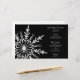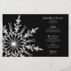 The festive Black and White Snowflake Winter Wedding Menu can be customized with the details of the meal that you will serve at your December, January or February winter wonderland theme engagement party, bridal shower luncheon or marriage reception dinner. Personalize it with the names of the bride and groom, venue location and event date. This elegant custom wintery wedding menu features a white intricate snowflake adorning the corner with a black background.