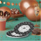 Destei's white snowflake pattern on a black background color sets the base for this modern Holiday design. In the middle there is a white circle filled with black snowflakes and two personalizable text areas ideal for writing a festive message such as "Merry Christmas" together with a custom party theme or name. Feel free to change the colors to your liking.