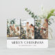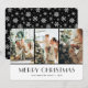 Modern black and white photo Christmas card featuring a photo collage on the front and a holiday pattern of snowflakes at the back. Easily personalize this elegant holiday card with your favorite photos and text.