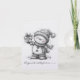 The simplest black and white Christmas note card featuring a Snowman holding a present, and text