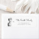 Elegant black and white Christmas snowman return address label. Illustrated and designed by Patricia Alvarez.
