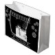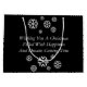 This cute snowman gift bag is customizable for you to add your own message The short christmas verse on the back of the bag is also customiazable. The smiling snowman is wearing his favorite black hat and back and white striped scarf, he's looking down at his christmas stocking that's hanging on a tree branch waiting for santa to fill it with special gifts. In the background the stars are shining and the trees are covered in snow. This original seasonal gift bag makes a great festive presentation for most gift. The original snowman illustration is a pen and ink drawing, he makes a cool fashionable black and white gift bag.