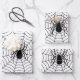 Black and White spider web Halloween Wrapping Paper Sheets. Party Supplies and Crafts with elegant cool fun pattern. Spooky Halloween cobweb design on custom white with big scary spider.