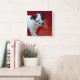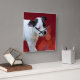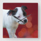 Pictured On A Burgundy Background Is A Black And White Staffordshire Bull Terrier Puppy,