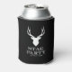 Customizable black and white can coolers featuring classic typography with stag icon. Perfect as a personalized gift and favours for stag parties and bachelor parties.