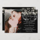 A black and white wedding invitation featuring pretty string lights and a delicate hand-drawn rustic floral garland of botanical leaf foliage with stylish script typography. Designed by Thisisnotme©