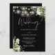 Black And White String Lights Floral Wedding Invitation