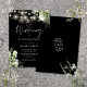 This elegant black and white wedding invitation features pretty string lights and floral greenery and can be personalized with your information in chic typography with your monogram initials on the reverse. Designed by Thisisnotme©