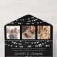 Experience the epitome of sophistication and charm with our all-in-one wedding invitation, blending elegant modernity with rustic chic allure. Adorned with a romantic gold rope heart and delicately intertwined string lights, this black and white masterpiece exudes timeless allure. Capture the essence of your love story with four captivating photos of the couple, adding a personal touch to every detail.