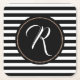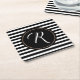 Stylish pulp board paper coasters done in a black and white horizontal stripe pattern. A black decorative circle, in the middle of the coaster, has a white single letter monogram. Personalize the letter to suit your needs. Great for anytime use and makes a nice gift idea.