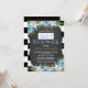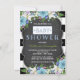 Pretty blue floral black and white stripe chalk baby shower invitation. You can easily customize this cute blue and black stripe chalkboard baby shower invitation by adding your event details in the font style and colour, wording, layout, etc., of your choice.