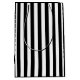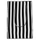 Medium gift bag with black and white stripes on the front and back. Both sides are solid black. Customizable. Modern and trendy, it is the perfect classic gift bag for gift giving.