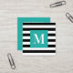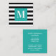 Black and White Stripe Turquoise Monogram Square Business Card