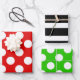 Black and White Striped Green Red Polka Dot Wrapping Paper Sheet