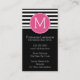 Black and White Striped Pattern Hot Pink Monogram Business Card