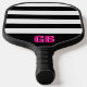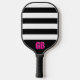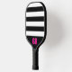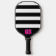Black and White Striped Pattern Pink Monogram Pickleball Paddle