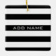 Black and White Striped Pattern with Name Ceramic Ornament