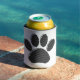 Black and White Striped Puppy Paw Print Can Cooler