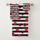Modern contrast minimalist pattern with black-and-white horizontal stripes and red circles looks stylish and showy.