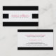 Elegant simple classic black and white stripes pattern. Nice modern feel with 3 large stripes front and border stripes on the back. Fully customizable double-sided business card template. Suggested pink colour font.