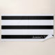 A beach towel that will exceed all of your expectations, this item features a black and white striped design. With your name personalized in the bottom right hand corner, the material is high quality. Makes a great gift. Personalize yours today!