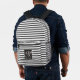 NewParkLane - Cute personalized backpack, with a modern, minialist black and white pattern. With a square frame for your name and monogram. Easy to customize in Zazzle with your own text for a personalized design. All text styles, colours, and sizes can be modified to fit your needs.