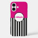 Black and White Stripes Pink Glitter Texture Case-Mate iPhone Case
