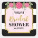Black and White Stripes Pink Roses Bridal Shower Square Sticker