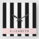 Black and White Stripes, Striped, Lines, Your Name Square Wall Clock