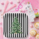 Black and White Stripes Watercolor Christmas Tree Paper Plate