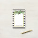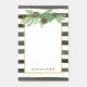 These stylish Christmas post it notes feature black and white watercolor look stripes, and faux gold confetti with a matching faux gold border. Green pine branches with pine cones decorate it, and you can personalize with any name or message.