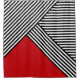 Simple abstract geometric design with black and white stripes and red triangle decoration