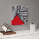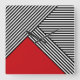 Simple abstract geometric design with black and white stripes and red triangle decoration