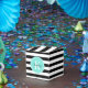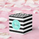 Black and White Stripes with Turquoise Monogram Favor Box