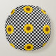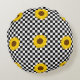 Black and White Sunflower Chequered Flower Pattern Round Pillow