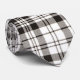 This elegant square neck tie design features a classic black and white Scottish tartan plaid pattern.