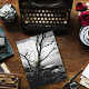 Black and white photography of a tree growing along the Marginal Way in Ogunquit, Maine. Only the vines growing up the trunk have colour.