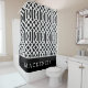 Custom shower curtain featuring a modern trellis print in black and white colours. Personalize it with your name or other text along the bottom. Use the design tools to change the background colours to match any bathroom decor. Add your own text and photos to personalize the design and create a one of a kind monogrammed shower curtain.