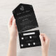 Add a touch of mystery to your wedding with these tri-fold tattoo gothic wedding invitations with tear-off RSVP cards! This minimalist black and white design features skulls, roses, and other gothic elements, making it perfect for those who want to add a dark twist to their big day. Make a statement with a wedding invitation card that your guests will never forget. Perfect for a Halloween wedding or hallowedding.