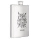The product is a good size and came exactly as it was pictured. The lid is not attached to the flask, which could be dangerous on drunken nights... The print came out surprisingly well and looks very sharp. Would definitely recommend.