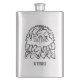 The product is a good size and came exactly as it was pictured. The lid is not attached to the flask, which could be dangerous on drunken nights... The print came out surprisingly well and looks very sharp. Would definitely recommend.