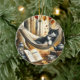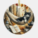 Black and White Tuxedo Cat Dreaming of Adventure Ceramic Ornament