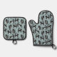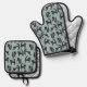 Black and White Tuxedo Cat Pattern Oven Mitt & Pot Holder Set