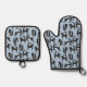 Black and White Tuxedo Cat Pattern Oven Mitt & Pot Holder Set