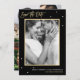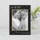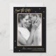 Classy and Modern Black with Gold Colour Brush Script and White Dots Two Photo Save the Date Card.